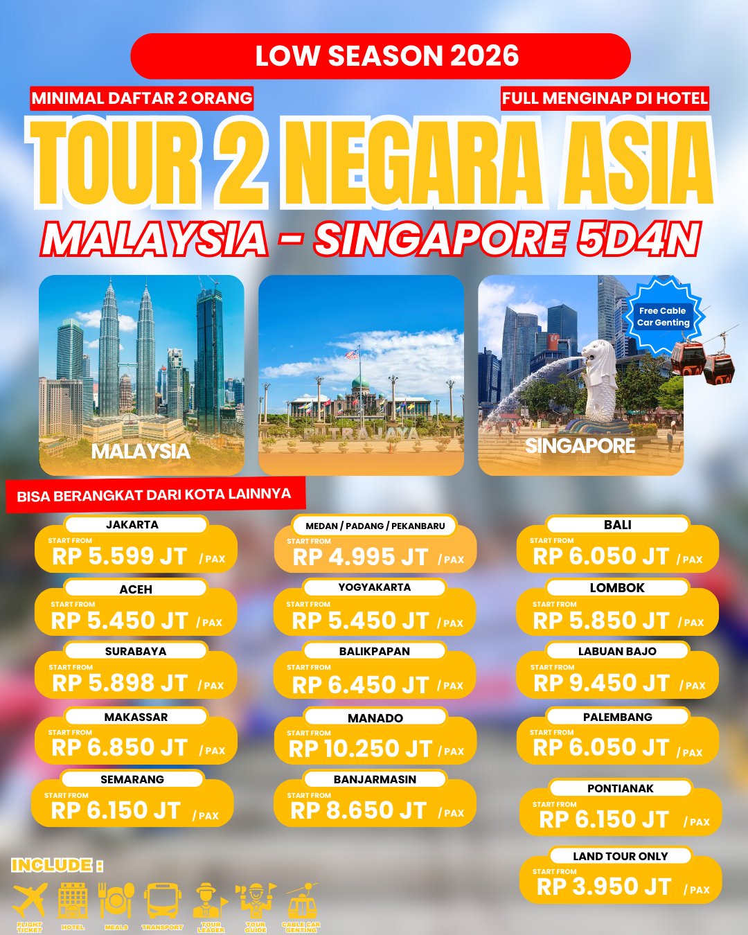 ➢ Down payment Land Tour Only 2,5jt/low & 3,5jt/peak dan pelunasan 20 hari low & 25 hari peak sebelum tanggal keberangkatan.
